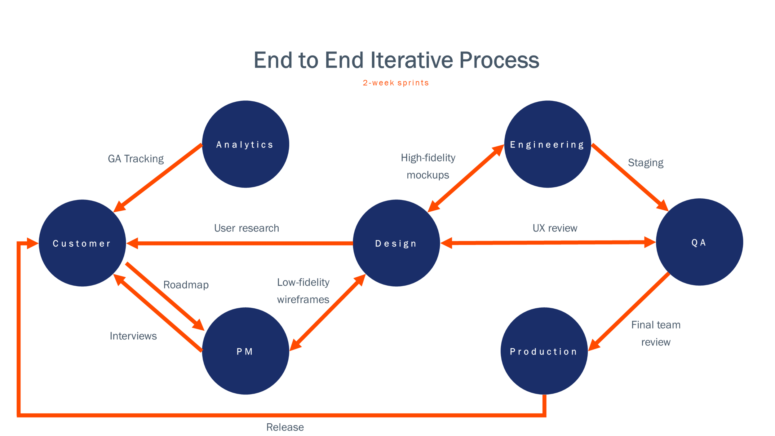 Constantly collaborating across design, product management, engineering, QA, and analytics. Admittedly we need to do a better job incorporating user testing in our process. Currently user research involves customer interviews, competitive analysis, and refining our personas.