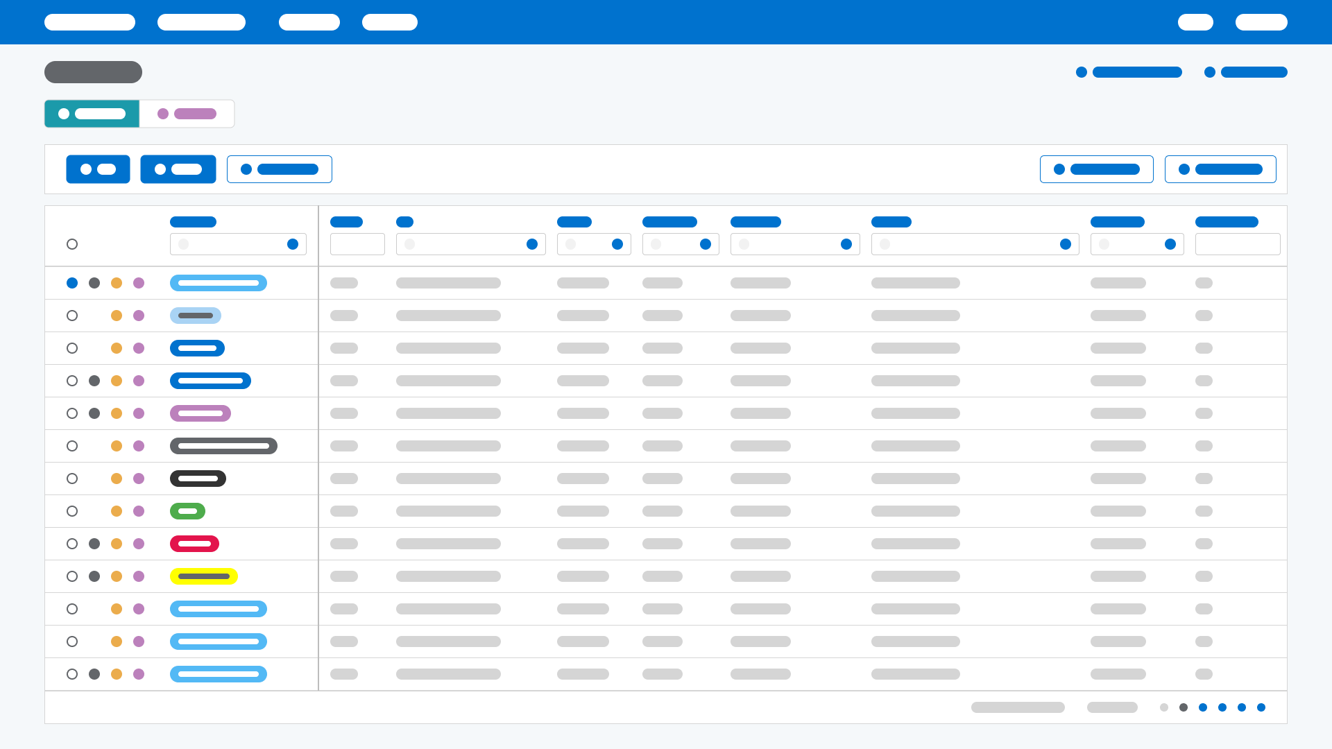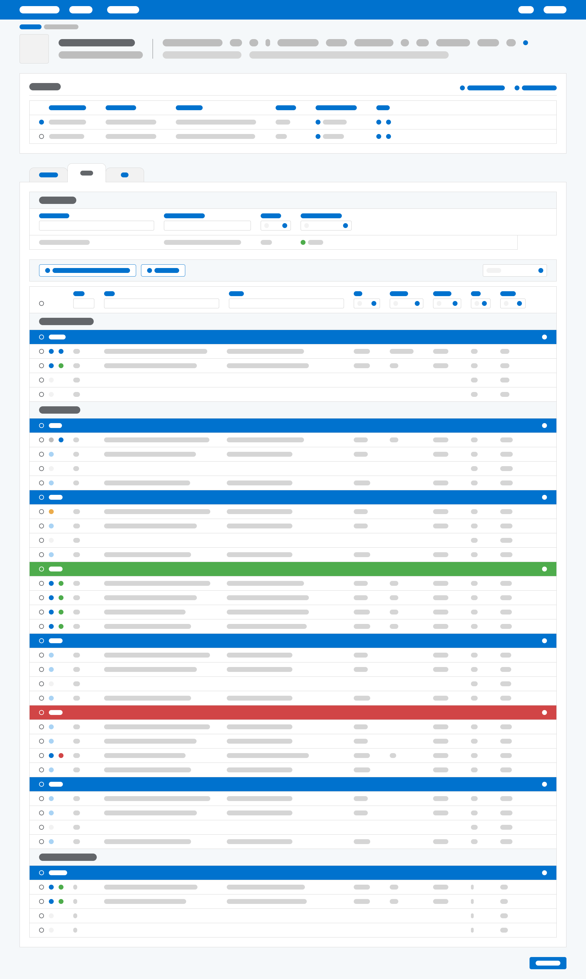 In a lot of ways this is a culmination of design thinking across the other apps. Color-coordinated accordions to signify status while also allowing for collapsing and expansion of data. Badges to draw users to critical information. Containers and tabs to organize and scale like data with like actions. Filters to empower users and give them control. Knowing when and how to show granularly vs for overview. And critically, understanding the crux behind workflow challenges.